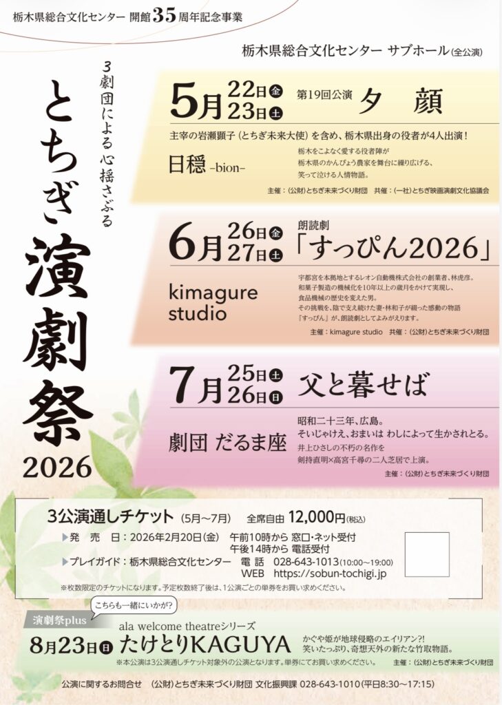 「公益財団法人とちぎ未来づくり財団」と共催で、『とちぎ演劇祭』を開催!!